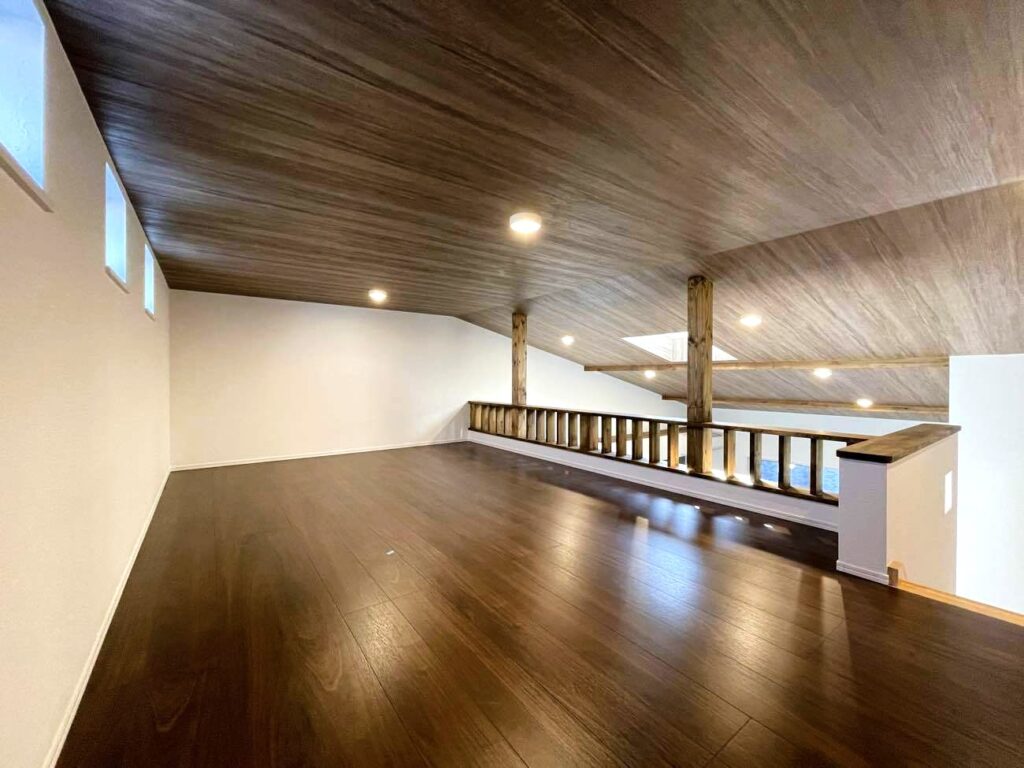 ロフトは広々とした空間。子供部屋代わりに、趣味のスペースに、収納にとご家庭に合わせて多彩な使い方が可能です。 高窓からの光も差し込みます。